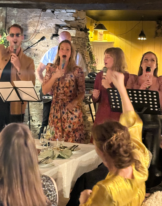 När vi bygger kvällen runt musik, band, lag och aktiviteter (och alla plötsligt vågar lite mer än de trodde)… då stiger stämningen till oanade höjder. Det blir skratt, nerv, oväntade talanger – och den där känslan av att “vi är faktiskt ett team”.